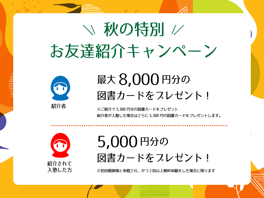 現在、当塾では「秋の特別紹介キャンペーン」を実施中です。